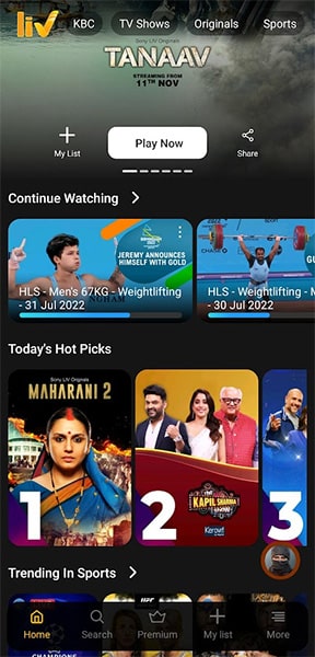 SonyLIV does not disappoint as a Hindi movie app. You have the entire library of films and shows which are produced by Sony. There is a free section consisting of movies and shows that you can watch without having a subscription or logging in.