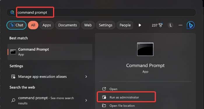 - Type command prompt in the box and select Run as administrator to open Command Prompt on your PC as admin.