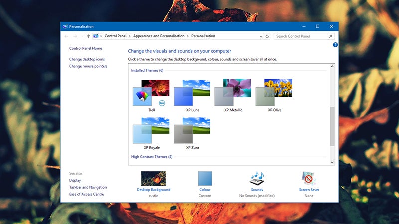 Once that is done, you can open up the Personalisation dialog as usual: Right-click on a blank area of the desktop and select Personalise. Choose Themes, and then Theme settings. If you scroll down, you will be able to view your newly installed XP themes.