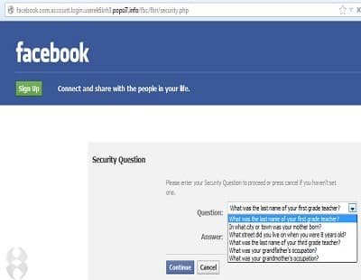 The victim is then redirected to A phishing page prompting for selecting security question and answer. of his own choice.