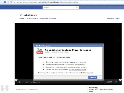 After completion of all these, victim is redirected to Another page containing a video from youtube, where they are asked to install an update for flash player, to continue watching the video.
