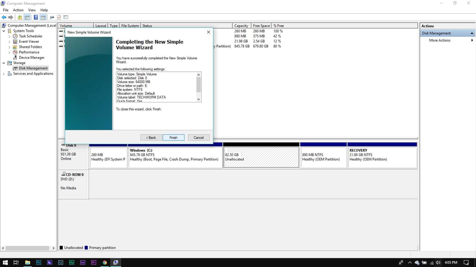 - Right click on Unallocated and select New Simple Volume from the context menu.