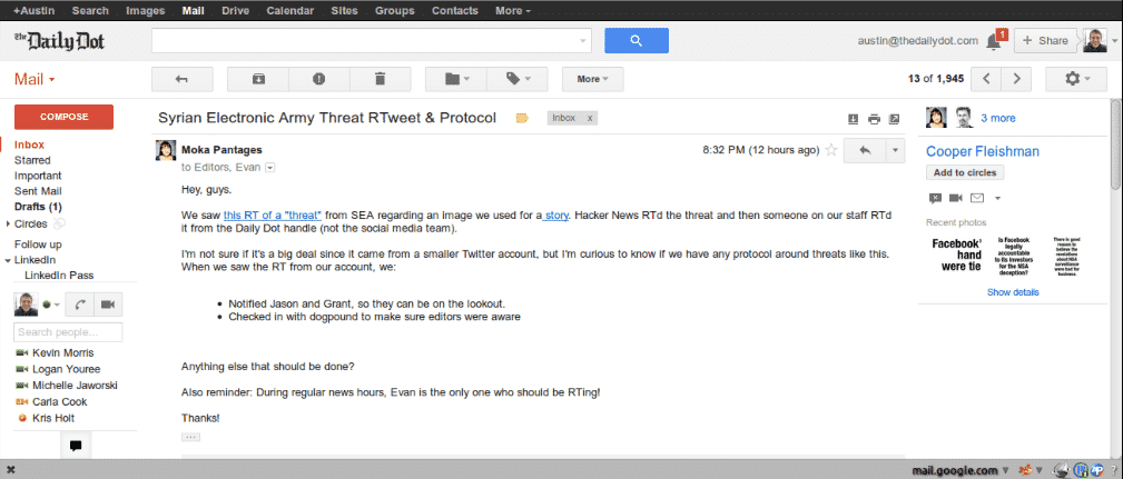 The warning was not taken seriously by Editor of daily dot and he asked other employs to not respond on any phishing emails that can get there account hacked.