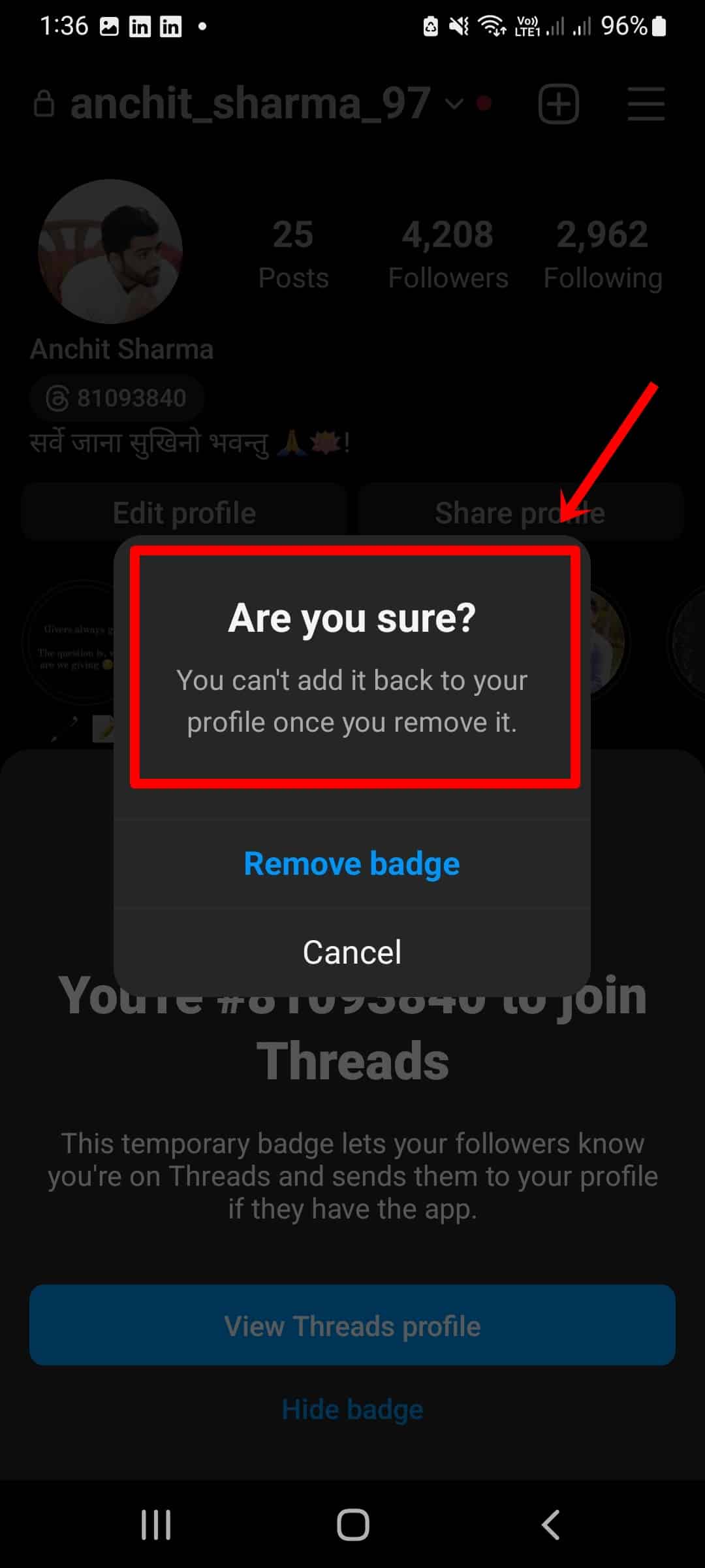 Note: Instagram says that the Threads badge on the Instagram profile is temporary and will be removed for all in the future.