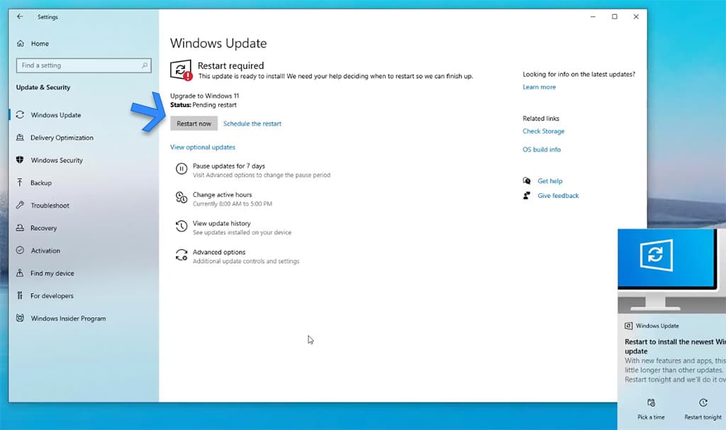 5. After the update is downloaded, a notification will pop up. You can either begin the upgrade Windows 11 process right away or do it later if some backup work is pending on the computer.